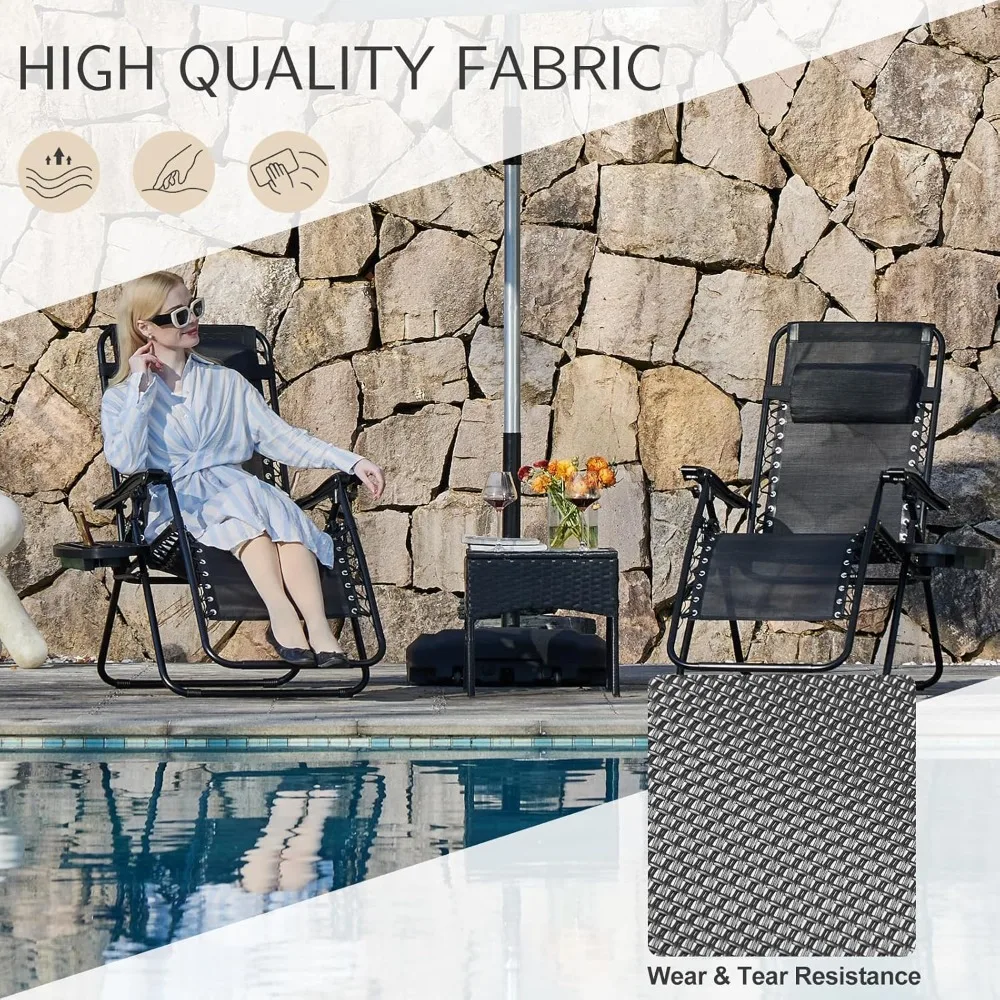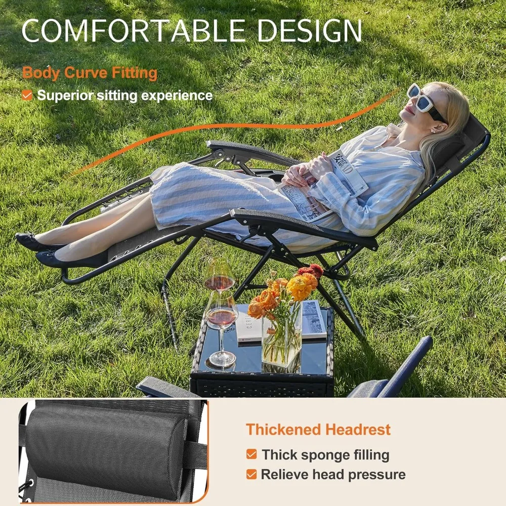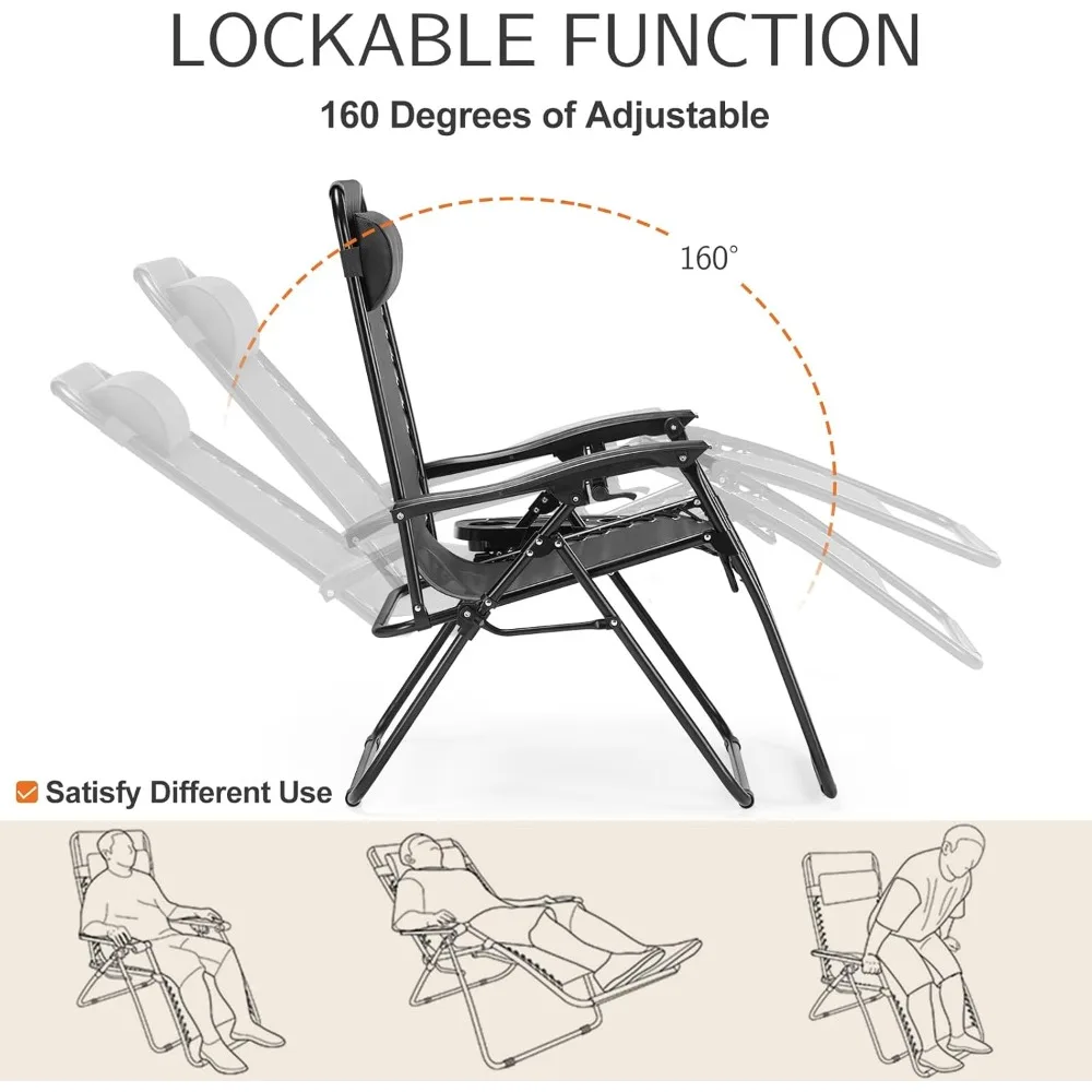 This set of gravity lounge chairs is an ideal choice for enjoying the outdoors in comfort and style.