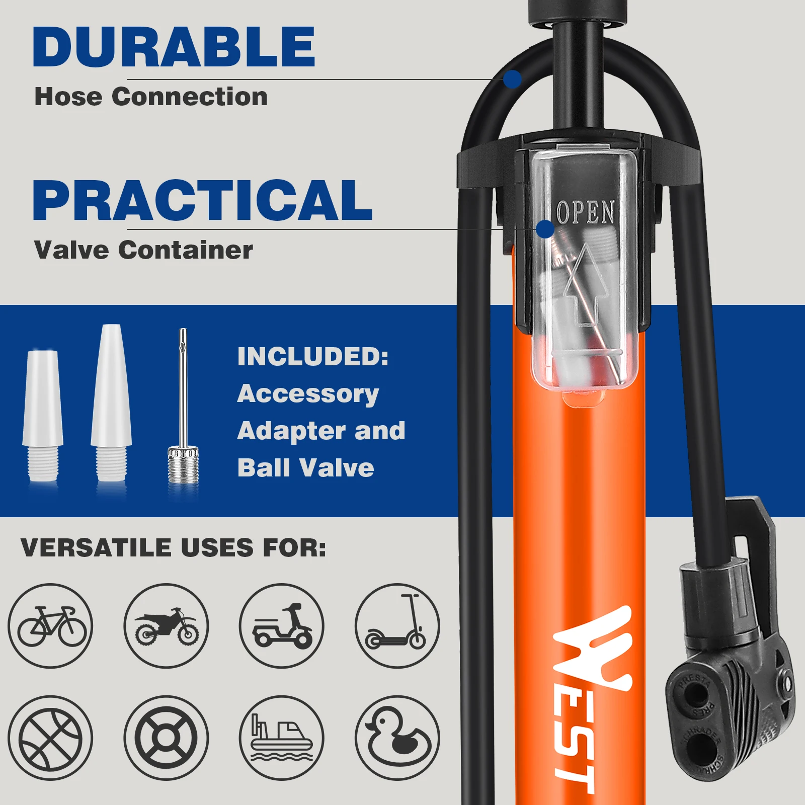 This pump is also suitable for inflating sports balls and accessories.