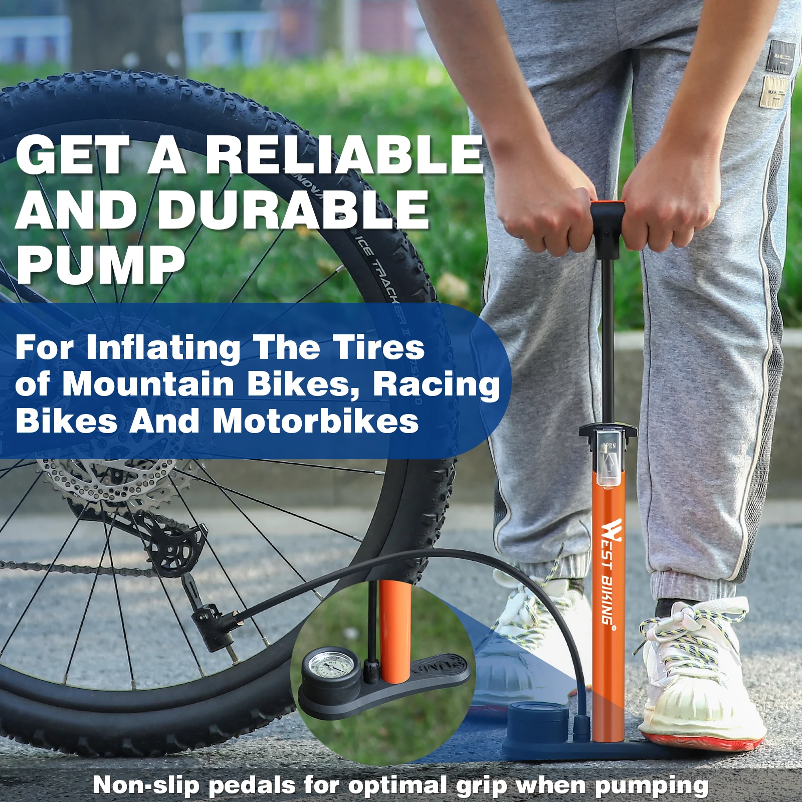 The built-in pressure gauge allows accurate monitoring while pumping.