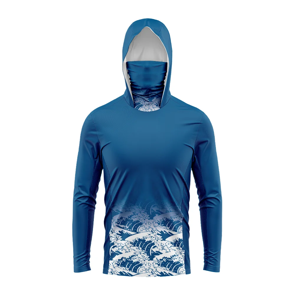 This men’s hooded fishing shirt is designed for comfort and sun protection during outdoor activities.