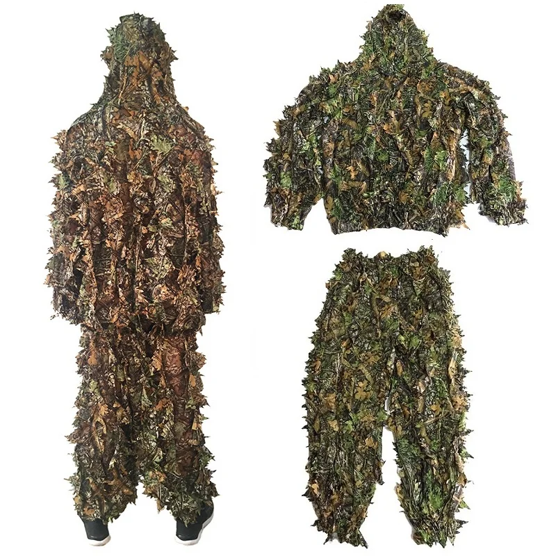 This outdoor ghillie camouflage suit is designed for maximum concealment in natural environments.