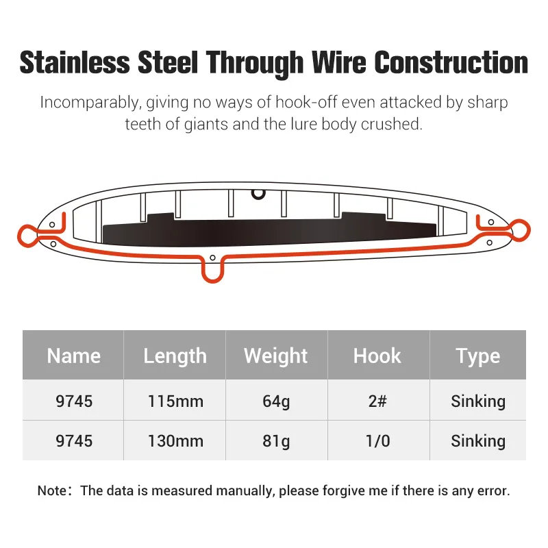 Available in two sizes—115mm/64g and 130mm/81g—to suit different fishing conditions.